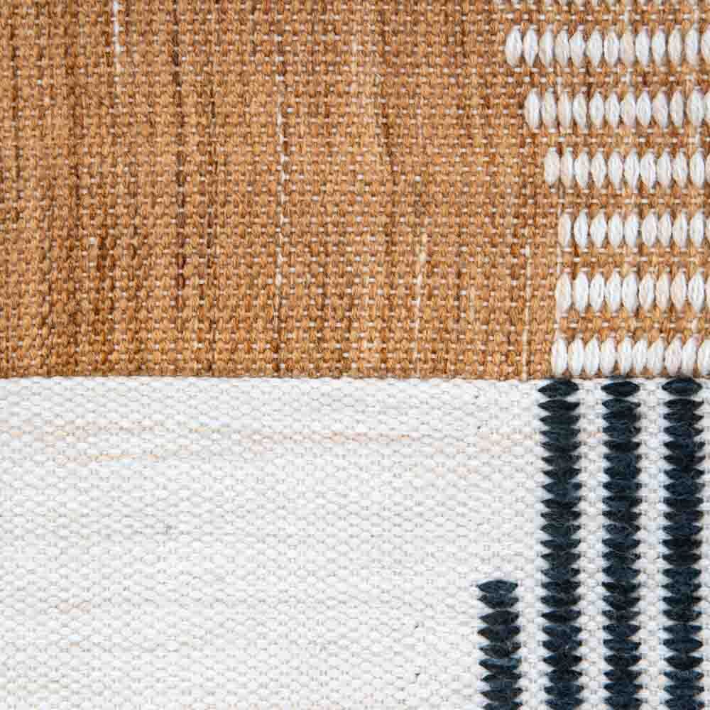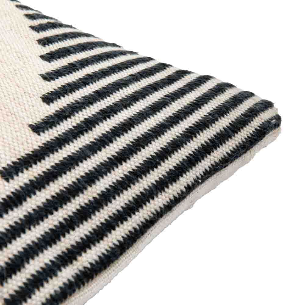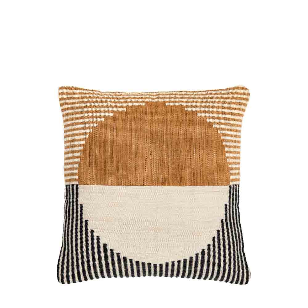 This cushion features a woven geometric design, in a black and rust colourway.