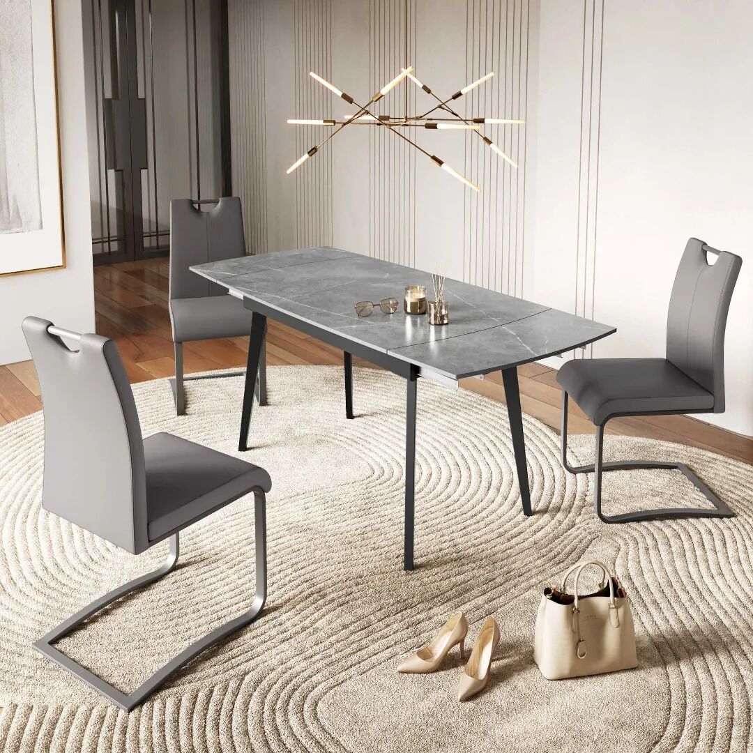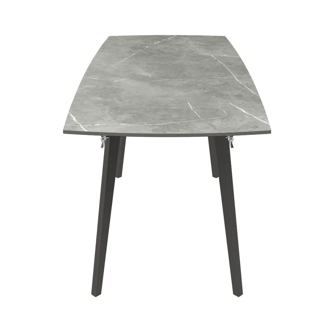The Verdi Extending Dining Table offers versatility with its end pull-out extension mechanism, allowing the table to remain compact for everyday use and easily extend to host more guests when needed. The availability of Gloss Light Grey Ceramic and Matte Grey Ceramic options provides a choice between a marble-effect glossy surface and a matte sintered stone surface. Both options feature sleek designs and powder-coated legs, ensuring a modern and stylish appearance. The use of ceramic and glass materials enhances durability and resistance to heat and scratches.