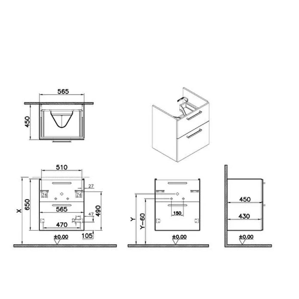 Root Washbasin Unit 2 Drawer Glossy Anthracite 67944