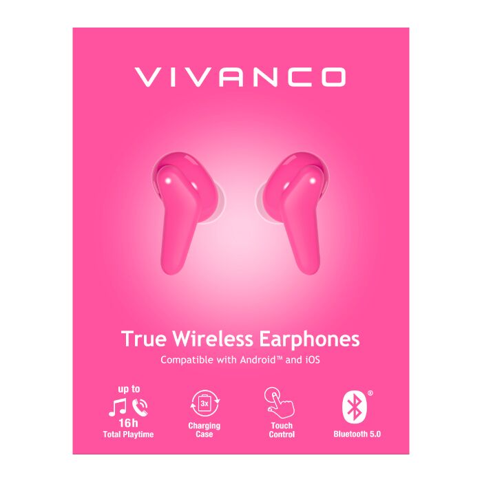 Vivanco Wireless Stereo Earbuds – Pink
