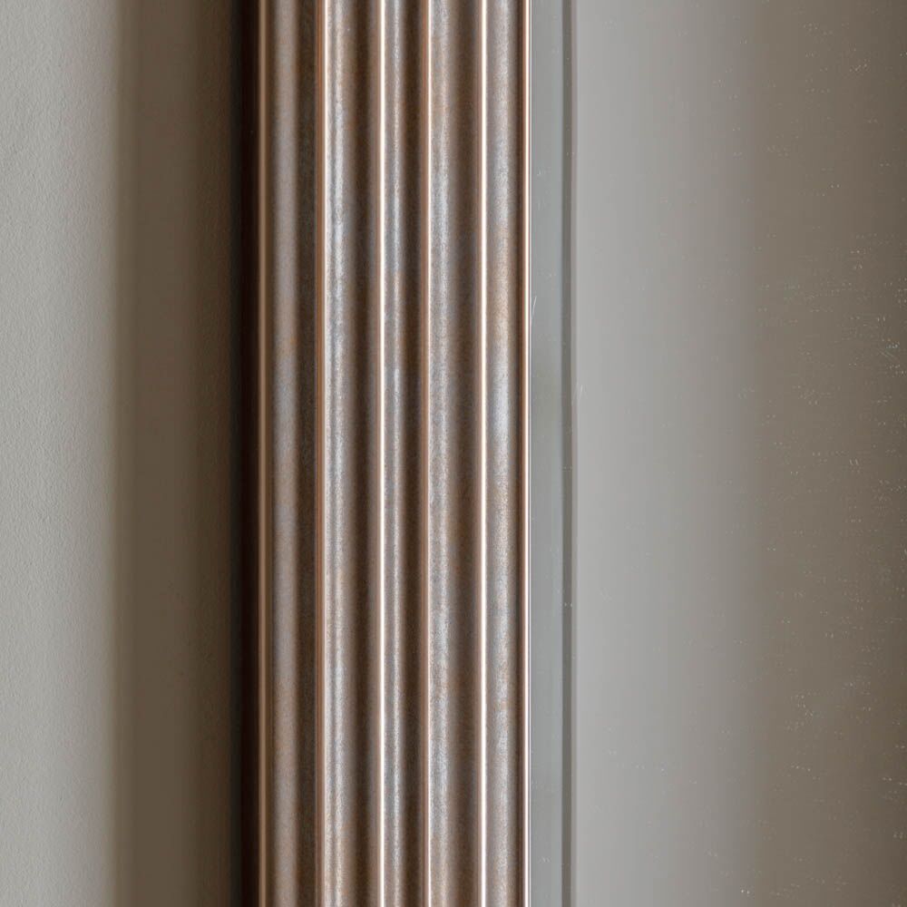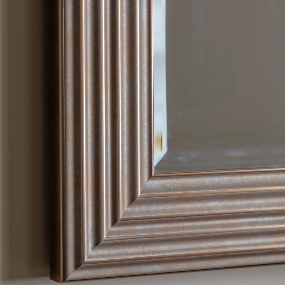 This mirror boasts a distinctive ridged design that catches the eye, while the distressed finish adds an authentic, timeworn charm. The rectangular frame, with its rich gold tones and textured details, provides a sophisticated yet rustic appeal, making it a striking focal point for any room. Ideal for living rooms, bedrooms, or hallways, this mirror blends timeless beauty with modern style, effortlessly enhancing your decor with a warm, inviting glow.