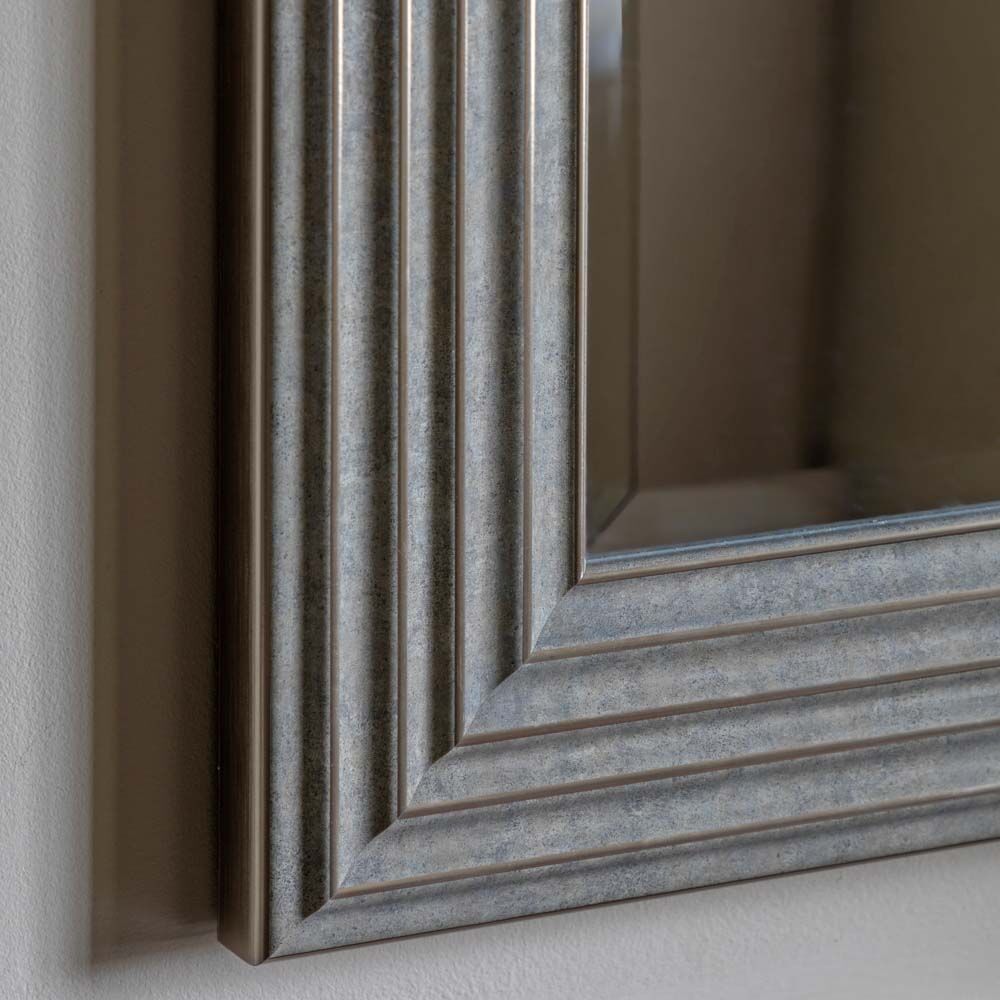 Add a touch of vintage elegance to your home with our rustic silver ridged mirror. The mirror boasts a distinctive ridged design that catches the eye, while the distressed finish adds an authentic, timeworn charm. The square frame, with its rich rustic silver and textured details, provides a sophisticated yet rustic appeal, making it a striking focal point for any room. Ideal for living rooms, bedrooms, or hallways, this mirror blends timeless beauty with modern style, effortlessly enhancing your decor with a warm, inviting glow.