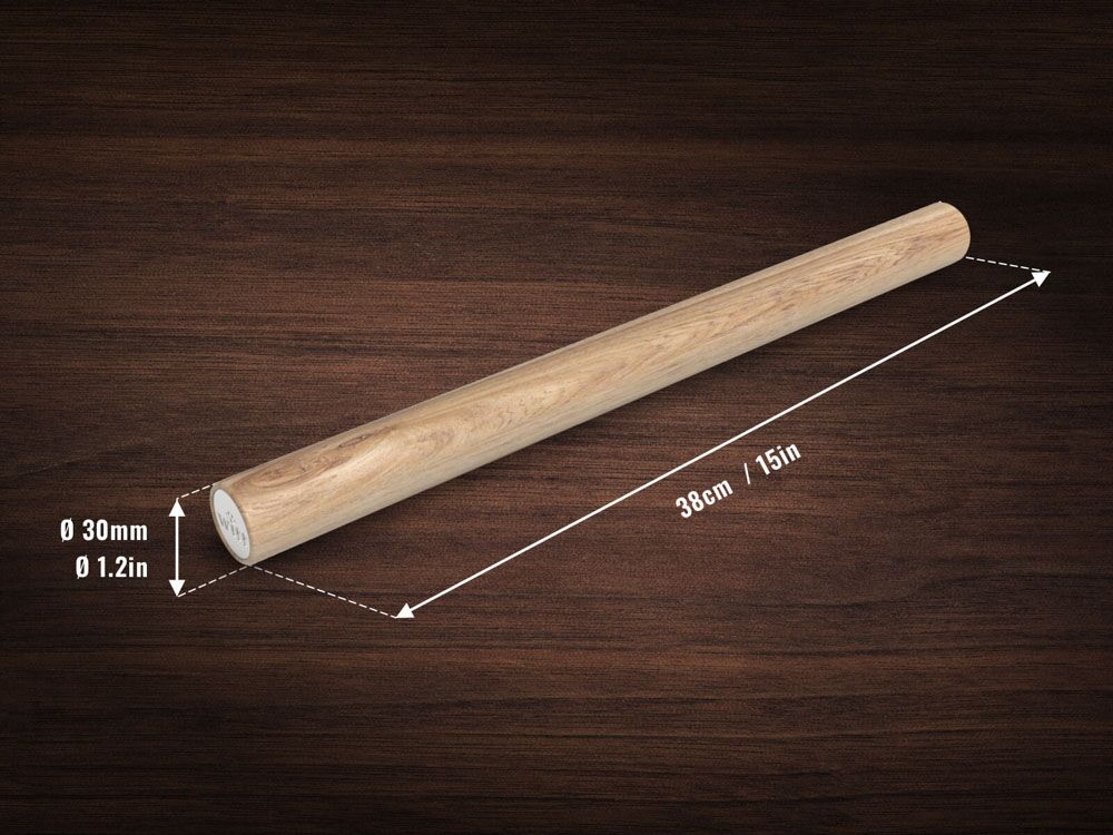 Rolling pin made from durable rubberwood – perfect for making that delicious and ultra thin pizza bottom.