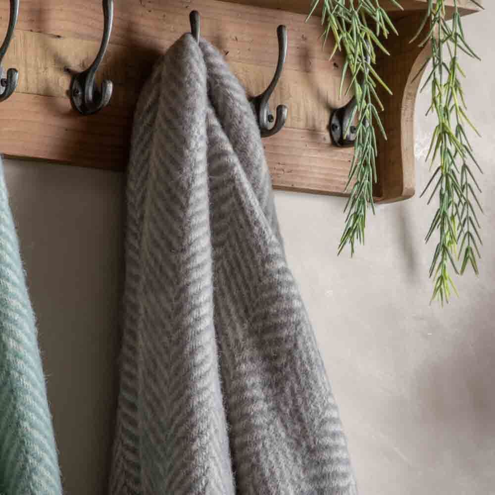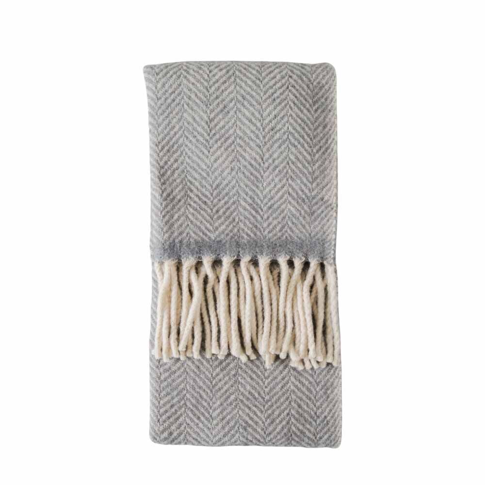 Beautifully soft 100% wool throw in a herringbone design, roll packaged with cream ribbon.