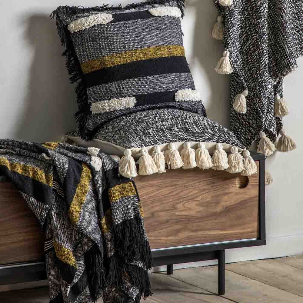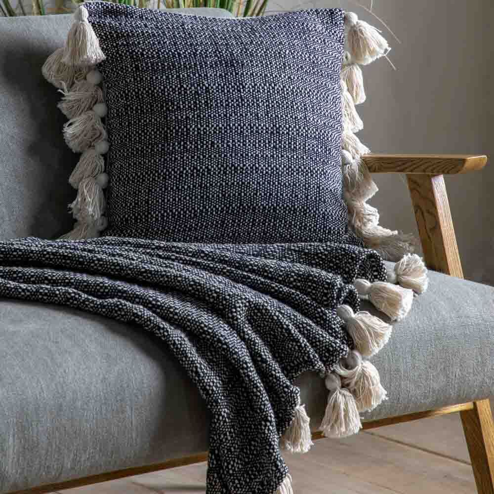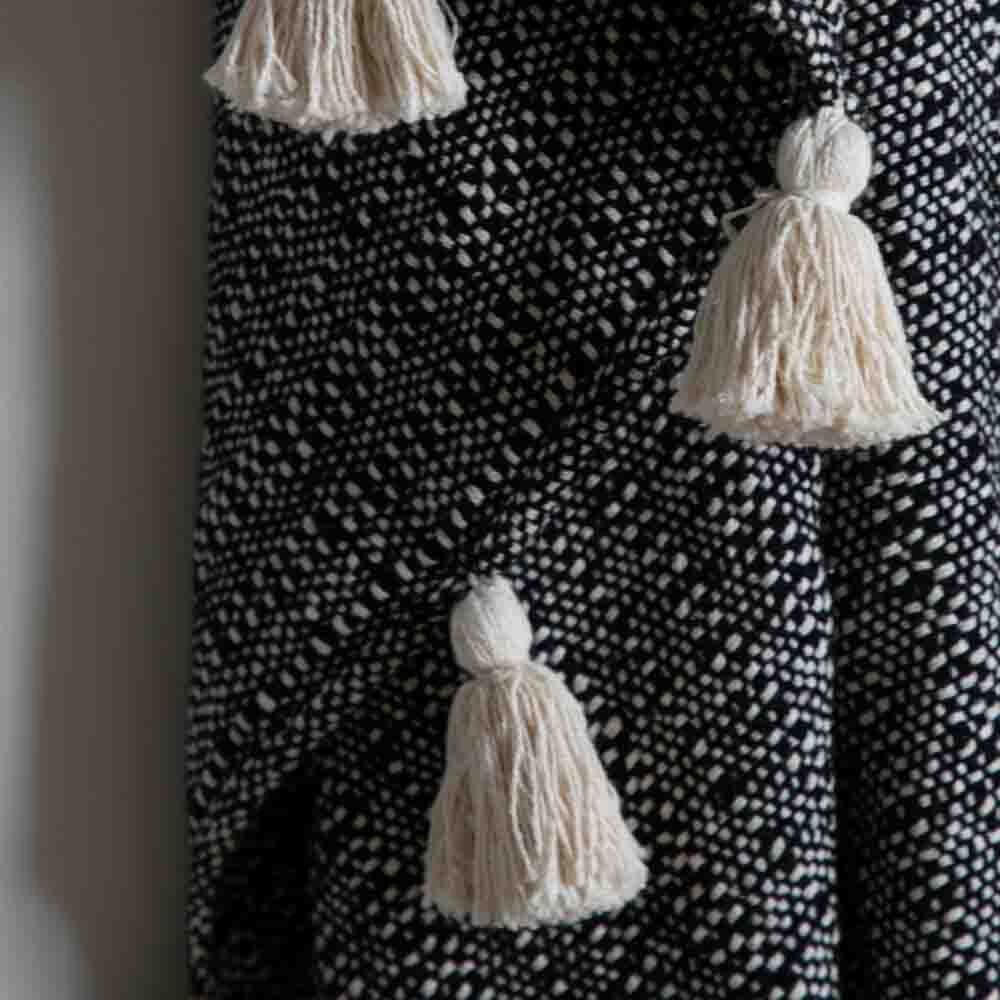 A stylish woven cream and black throw with a tassel edge. Perfect to pair with its matching cushion.